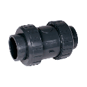 The Praher S4 series spring check valves feature true union ends and an internal spring loaded check design that guarantees leak tight seating in extreme low pressure and vertical installations. They are available in sizes 1/2" to 4" in either PVC, CPVC, PP or PVDF with EPDM or FPM check seals and O-rings. 304 stainless steel, Teflon® or Hastelloy®-C spring materials are available with a minimum of 1 lb spring load. True union ends are interchangeable with the S4 series ball valves.