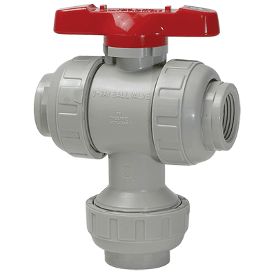 Asahi/America Type-23, 1/2" Polypropylene Three-way Ball Valve FKM Seals, PTFE Seats