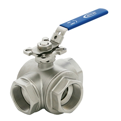 The AVCO 300 series ball valve is an economy side entry diverter ball valve with L and T port ball options to swap or divert flow from one port to another, or change one media flow to another media flow through a common port. Constructed from cast 316 stainless steel (CF8M), it has NPT ends that meet ASME B1.20.1 and comes standard with an ISO 5211 direct mounting pad. It is available in sizes ¼ through 2 and up to 1000 WOG pressure. The valves come standard with a locking lever handle to prevent unwarranted use. A live loaded, blow-out proof stem is standard with reduced port flow. The valves come with 15% glass filled TFE (RTFE) seats and TFE seals to provide consistent performance in a wide range of applications including the chemical, hydraulic, food processing, water, oil and gas industries. The 300 Series valves offer the lowest price point for our diverter ball valves.