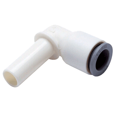 Parker 6382 56 00WP2 1/4" LIQUIfit® Series White Bio-Based Polymer 90° Elbow, Push-To-Connect x Tube Stem, EPDM O-Ring, Stainless Steel Gripping Ring