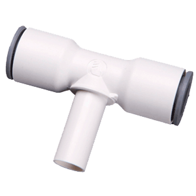 Parker 6388 56 00WP2 1/4" LIQUIfit® Series White Bio-Based Polymer Plug-In Tee, Push-To-Connect x Push-To-Connect x Tube Stem, EPDM O-Ring, Stainless Steel Gripping Ring