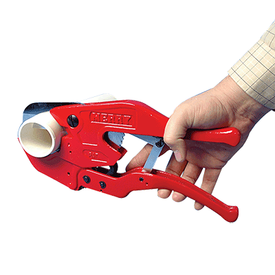 The Wheeler Rex 7290 ratcheting scissor pipe cutter is popular choice in the category of shear type cutters. The 7290 requires less force to slice through plastic piping than most cutters in its class. The 7290 also cuts square all the time. It can be used for PVC/CPVC, polypropylene, polyethylene, ABS or PVDF pipe.