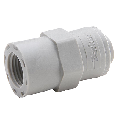 Parker A4FA7-MG 1/4" 7/16"-24 TrueSeal™ Series Gray Acetal Faucet Adapter, Push-To-Connect x FPT, EPDM O-Ring, Metal Grip Edge