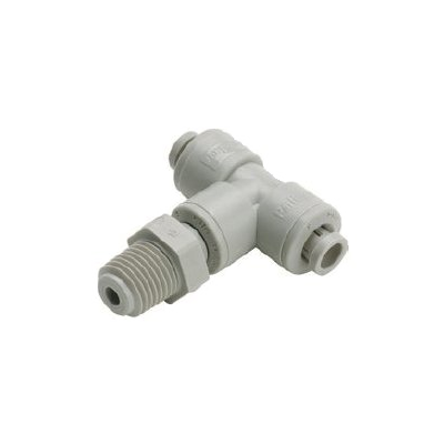 Parker A6MTS6-MG 3/8" TrueSeal™ Series Gray Acetal Swivel Tee, Push-To-Connect x MPT, EPDM O-Ring, Metal Grip Edge