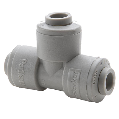 Parker A6TU6-MG 3/8" TrueSeal™ Series Gray Acetal Union Tee, Push-To-Connect, EPDM O-Ring, Metal Grip Edge