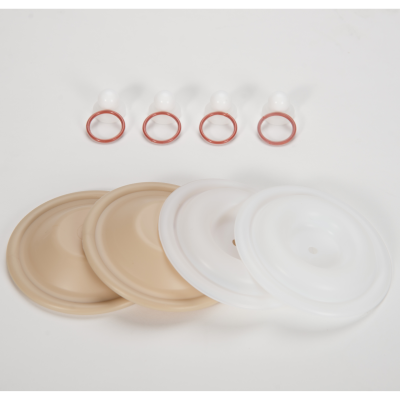 A100 Bolted Plastic Series Wet End Repair Kit. Diaphragms = PTFE, Balls = PTFE, Seat = PVDF, O-Rings = PTFE. Includes O-Ring(valve seats(4), valve seat(4), ball(4), PTFE overlay(2), and Diaphragm(2)
