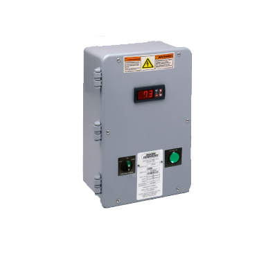 Process Technology DLC series digital combination controls feature a 1/2" high easy-to-read LED display. Each controller comes standard with an FEP covered 10' thermistor which provides extended service in corrosive liquids and can be lengthened with ordinary copper wire. The corrosion resistant enclosure is Nema1, IP21 rated, flame retardant with stainless steel hardware. DLC series also comes standard with 3 pole contactor, transformer and thermostat.