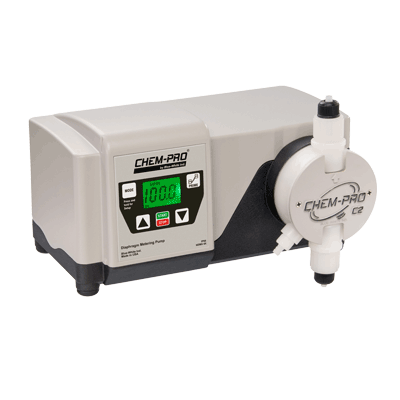 Blue-White Chem-Pro Series model C2 is a type of positive displacement diaphragm metering pump used for pumping a variety of fluids. Chem-Pro pump is pre-configured for diaphragm, pump head and fittings that shipped with your metering pump. Chem-Pro® C2 model is capable of maximum feed rate up to 20.3 GPH / 76.8 LPH and maximum pressure up to 175 PSI / 12 bar.