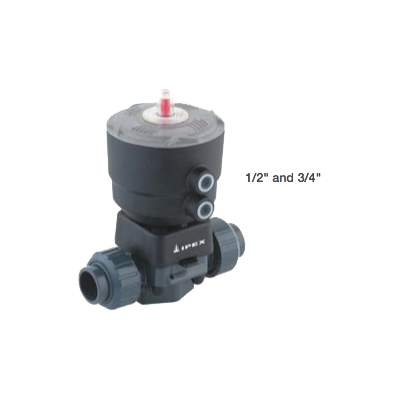 IPEX Series DK 1/2" Pneumatic Diaphragm Valve, Normally Closed, True Union Threaded Connection, PVC Body, FPM Diaphragm, FPM Seal