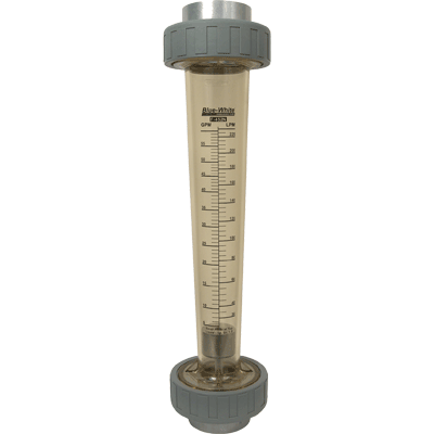 Blue-White Series F-452N Flowmeter, In-Line Mount, 6 to 100 GPM / 20 to 380 LPM, 2" Female NPT Polysulfone Adapter, 316 Stainless Steel Float, 316 Stainless Steel Guide Rod, Without Shield