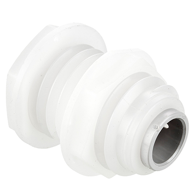 Parker Bulkhead Union, 1/4" Tube, PVDF Construction, Fluorocarbon Seal, Push-to-Connect, Plastic Grip Edge, Natural