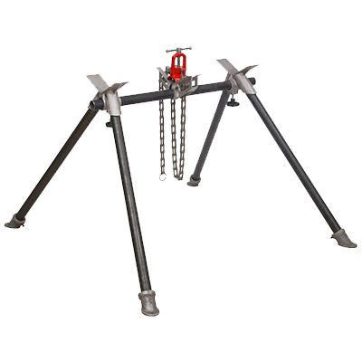 Field Pipe Vise holds pipe up to 20 (500 mm) diameter. More pipe capacity than other Reed vises and 2,000 lb (909 kg) vise capacity, yet weighs only 22 lbs (10 kg) without legs and backbone. Super choice for pre-trench work and above ground cuts. Excellent flexibility achieved in height and length of vise appropriate to application as customer may cut own pipe for legs and backbone. Legs and backbone for this vise are available, but must be ordered separately (# 96014) and weigh 50 lbs (22.7 kg). To create legs, use 1 1/2" Sch. 40 steel pipe.
