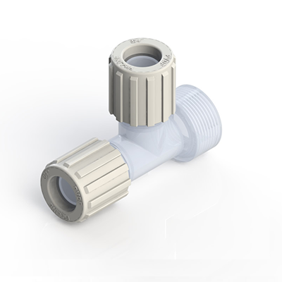 Fit-LINE FRT1212-12N-1 3/4" White PFA Run Tee, Male Flare x Male Flare x FPT Ends, PVDF Flare Nut