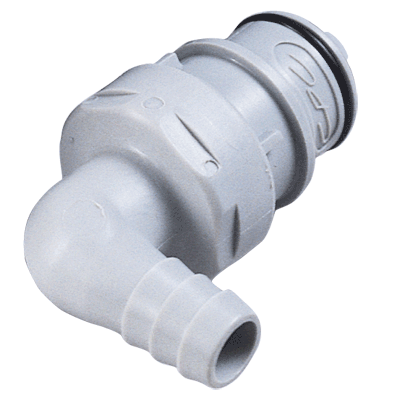 CPC HFCD23812 1/2" Quick Disconnect HFC12 Series Gray Polypropylene Valved 90° Elbow Coupling, Male Insert x Hose Barb, EPDM Seal