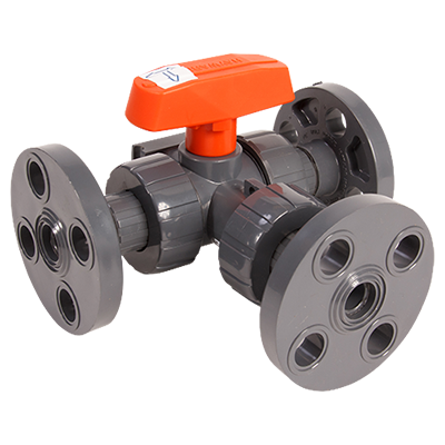 Hayward series LA lateral 3-Way true union ball valves are offered in PVC and CPVC in 1/2" to 6" sizes with either FPM or EPDM o-rings and PTFE seats. The 1/2" to 2" sizes are offered in either flanged or socket & threaded connections. The 2-1/2" to 4" sizes are offered in either socket, threaded or flanged end connections. The 6" size is only offered with a flanged connection. The true union design allows for quick installation and easy maintenance. Upgrade series LA with the following options: Lockouts, pneumatic or electric actuation or a 90° ball.