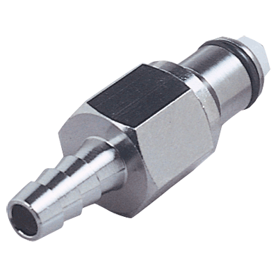 CPC LCD22004 1/4" Quick Disconnect LC Series Gray Chrome-Plated Brass Valved In-Line Coupling, Male Insert x Hose Barb, Buna-N Seal