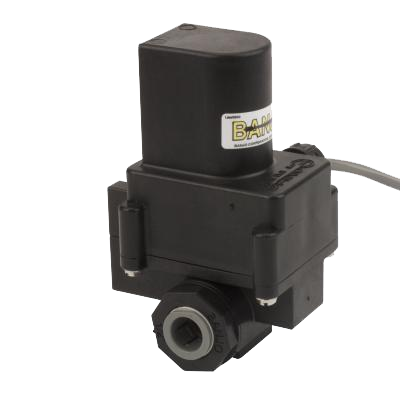Banjo LEV Series electric valves are constructed of fiberglass reinforced polypropylene with PTFE seats and EPDM seal. Response time is 1/3 sec open to close.