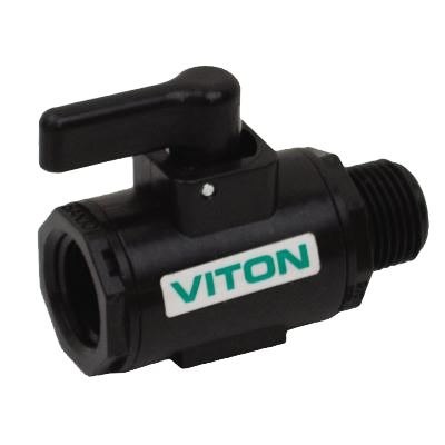 Banjo Series LV Micro Valve, 3/8" FPT x 3/8" MPT Connection, Glass Filled Polypropylene Construction, FKM Seats, FKM Seals