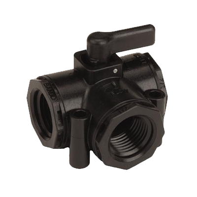 Banjo Series LV Micro Side Load Valve, 1/2" FPT Connection, Glass Filled Polypropylene Construction, FKM Seats, FKM Seals
