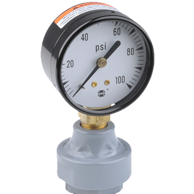 Series MTG, TUFF GUARD™ Mini Gauge Guard Isolator Assembly, 1/4" Vented FPT Instrument Port, 1/4" FPT Process Inlet Port, PTFE/FKM Diaphragm, CPVC Body, With Ametek Economy Gauge, 0 - 30 PSI