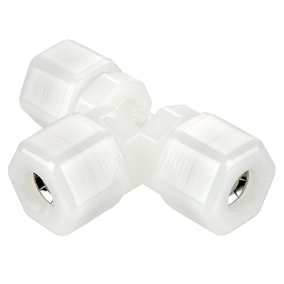 Parker N4TU4 1/4" Fast & Tite® White Nylon Union Tee, Tube, Nitrile O-Ring, Ferrule Nut