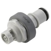 CPC NS4D22006 3/8" Quick Disconnect NS4 Series Gray Polypropylene Valved In-Line Coupling, Male Insert x Hose Barb, EPDM Seal