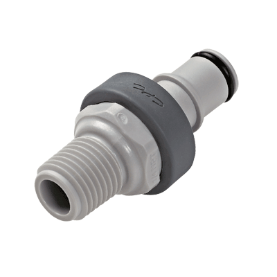 CPC NS4D24004BSPT 1/4" Quick Disconnect NS4 Series Gray Polypropylene Valved Coupling, Male Insert x BPT, EPDM Seal