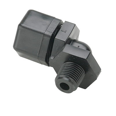 Parker P8ME12 1/2" x 3/4" Fast & Tite® Black Polypropylene 90° Elbow, Tube x MPT, Nitrile O-Ring, Ferrule Nut