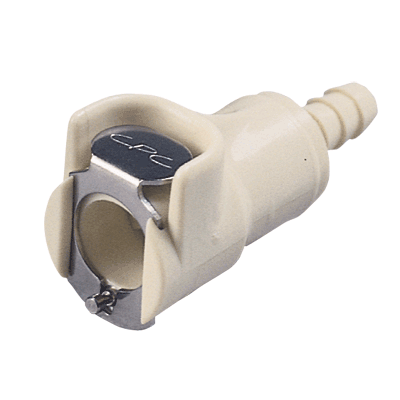 CPC PLCD1700412 1/4" Quick Disconnect PLC12 Series Natural Polypropylene Valved In-Line Coupling Body, Female Insert x Hose Barb, EPDM Seal