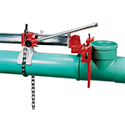 For Gasketed Pipe: The Plastic Pipe Joiner can connect and separate 4" - 16" IPS and cast iron size gasketed pipe. Components required for joining gasketed pipe include the Plastic Pipe Joiner (PPJ) and V-shaped saddles (PPJVS). Gasketed pipe is found in underground work such as utility work, among other places. For Solvent Cement Connections: The Plastic Pipe Joiner connects solvent cement joints on all pipe schedules, IPS, and water pipe from 4" - 12". For solvent cement connections, individually sized saddles must be ordered together with the Plastic Pipe Joiner (PPJ) and the plastic pipe joiner fitting attachment (PPJFA). PPJFA is only used for branch attachments. Solvent cement joining occurs at places such as processing plants, water treatment facilities and industrial locations, among other applications.