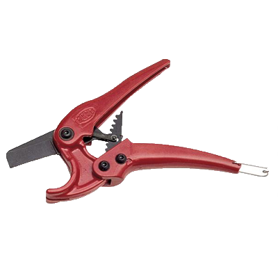 • Ratchet Shears are ideal for cutting PVC, PE, PP, PEX, and ABS pipe and tubing
