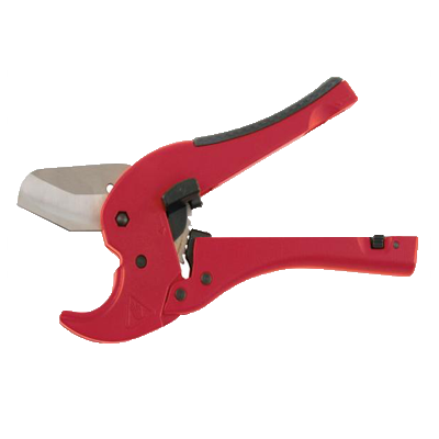 • Ratchet shears with hardened steel blades are ideal for cutting PVC, CPVC, PE, PP, PEX, and ABS pipe