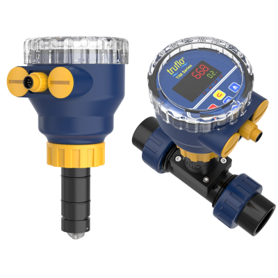 The Truflo® TIM Series Digital Paddle Wheel Flow Meter Sensor has been designed for tough industrial applications. The TIM Series paddle wheel flow meter sensor has been engineered to provide long-term accurate flow measurement for both corrosive and non-corrosive liquids. The plastic insertion flow meter sensor is equipped with a 360° rotatable vivid LED display showing both Flow Rate & Flow Total and provides a 4-20mA output. The re-engineered low-drag, fluid-dynamic design of the paddle wheel allows it to stand alone as the industrys most accurate chemical flow meter. Icons paddle wheel flow meter sensors incorporate a Tefzel® paddle coupled with a zirconium ceramic rotor pin and bushings. The TIM Series liquid flow meter sensor, is industrys longest lasting plastic flow meter sensor and comes with a lifetime warranty on the paddle wheel assembly. The TIM Series insertion paddle wheel flow meter sensor is available in PVC, PP and PVDF. The flow meter sensors can be installed into pipe sizes 1/2" - 24" using our line of comprehensive custom fittings. Icons complete line of insertion paddle wheel chemical flow meter sensors will also retrofit into any Signet® style fitting. Applications: Liquid Chemical Flow Measurement, Filtration Systems, Water & Wastewater Monitoring, Industrial Chemical Distribution, Process Chemical Skids, Liquid Consumption, Discharge Verification