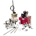 Universal Pipe Cutters (UPC) are lightweight, fast cutting and require only 12" (300 mm) clearance around the pipe. UPC's are easy-to-use and available to cut 6" - 48" nominal diameter (150-1300 mm actual O.D.) ductile iron, cast iron, clay, concrete steel, PVC or PE pipe. UPC's can be operated underwater and are pneumatically powered. Note: When cutting steel pipe with the steel blades, sparks are possible and expected. Because of the sparks, the UPC cannot be used for cold cuts.
