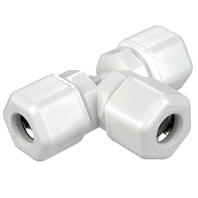 Parker W8TU8 1/2" Fast & Tite® White Polypropylene Union Tee, Tube, Nitrile O-Ring, Ferrule Nut