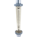 Blue-White Series F-450N Flowmeters feature a tough Polysulfone body that resist high temperature and pressure. The approximately 4" scale length and direct reading permanent scale make this flowmeter easy to read. F-450N has in-line, adjustable and panel mount configurations available. The standard model features a PTFE or 316 stainless steel float, FKM o-rings and a Polysulfone adapter. The K-Series model features a PTFE or Hastelloy float, FKM o-rings and a Polysulfone adapter. The Solarmeter model features a PTFE or 316 stainless steel float, FKM o-rings and a brass adapters. All models have the option of adding a integral flow adjustment valve. Series F-450N is not recommended for use in direct sunlight.