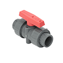 Hayward Series TBB commercial true union ball valves are offered in PVC, CPVC, PP and PVDF in sizes 1/2" to 4". The 1/2" to 2" sizes have socket and threaded or flanged end connections while the 2-1/2" to 4" sizes are either threaded or flanged. PVC, CPVC and PP valves come with either FPM or EPDM O-rings. PVDF valves are only offered with FPM O-rings. Seats for all materials and sizes are PTFE.