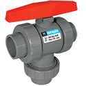 Hayward series TW 3-way true union ball valves come standard with a two port "TW" ball. The TW series ball valve allows for three flow configurations with a 180° rotation. With the bottom port acting as the inlet, the flow can be directed out of the left port, right port or shut off. There are optional TN or TP ball valves available furthering the diversity of this valve series. Series TW is offered in either PVC or CPVC with FPM or EPDM o-rings and PTFE seats. Series TW can be easily actuated; either pneumatically or electrically. Sizes 1/2" to 4" have either socket & threaded or flanged end connections; the 6" is only offered with flanged end connections.