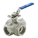 The AVCO 300 series ball valve is an economy side entry diverter ball valve with L and T port ball options to swap or divert flow from one port to another, or change one media flow to another media flow through a common port. Constructed from cast 316 stainless steel (CF8M), it has NPT ends that meet ASME B1.20.1 and comes standard with an ISO 5211 direct mounting pad. It is available in sizes ¼ through 2 and up to 1000 WOG pressure. The valves come standard with a locking lever handle to prevent unwarranted use. A live loaded, blow-out proof stem is standard with reduced port flow. The valves come with 15% glass filled TFE (RTFE) seats and TFE seals to provide consistent performance in a wide range of applications including the chemical, hydraulic, food processing, water, oil and gas industries. The 300 Series valves offer the lowest price point for our diverter ball valves.