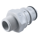 HFC12 Series Polypropylene Quick Disconnect Couplings are compact, lightweight, and replace bulky and heavy brass ball and sleeve couplings in a wide range of applications. An ergonomic design and a large, shrouded thumb latch pad produce a coupling that is easy to grip and simple to operate. An efficient valve design leads to high flow and low spillage. Polypropylene is an excellent general purpose resin that is highly resistant to chemical attack from solvents and chemicals in harsh environments. In general, polypropylene is resistant to environmental stress cracking and it can be exposed to challenging environments.