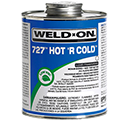 Weld-On® 727 Hot 'R Cold™ is a clear, low VOC emission, medium bodied, very fast setting high strength PVC solvent cement for all classes and schedules of pipe and fittings with interference fit through 6" diameter, Schedule 80 through 4" in diameter. 727 Hot 'R Cold™ is specially formulated for use in a wide range of temperatures encountered during all seasons of the year. Successful, high strength joints can be made at temperatures as low as - 15° F and as high as 110° F. It is suitable for use on rigid and flexible PVC pipe and fittings and can be used in very wet conditions and/or where quick pressurization of the piping systems is desired. 727 Hot 'R Cold™ is available in pint, quart and gallon metal cans. Can be used without primer on non-pressure systems if local codes permit. Meets ASTM D 2564 Standard and SCAQMD rule 1168/316A. LEED compliant. Shelf life is three years in a tightly sealed container.